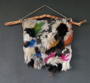 Het resultaat van de 'tour de fleece'2021. 10 strengen dun gesponnen vezels. Naast wol zit er in deze strengen ook tencel, viscose, bamboe, sarizijde en melkvezel